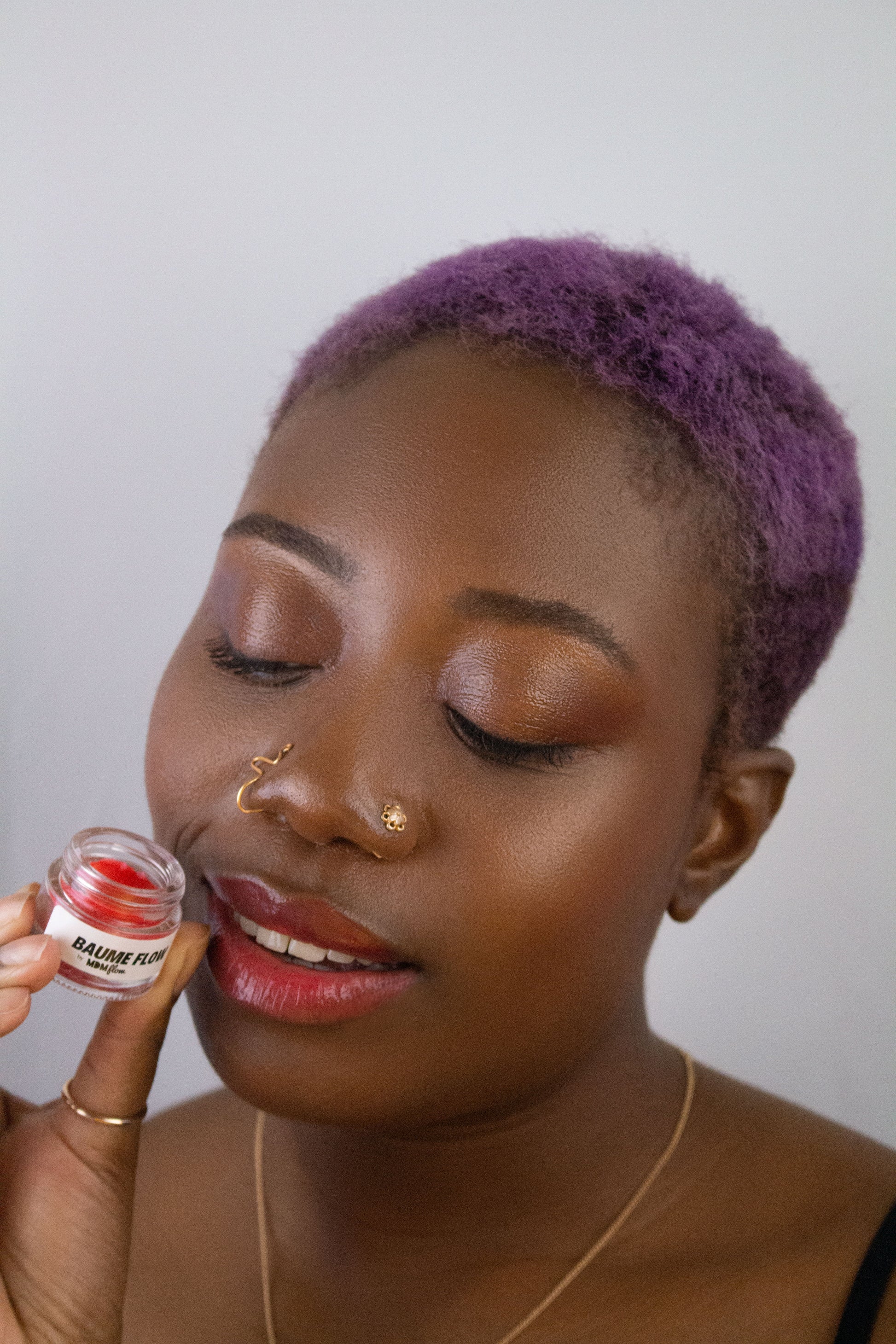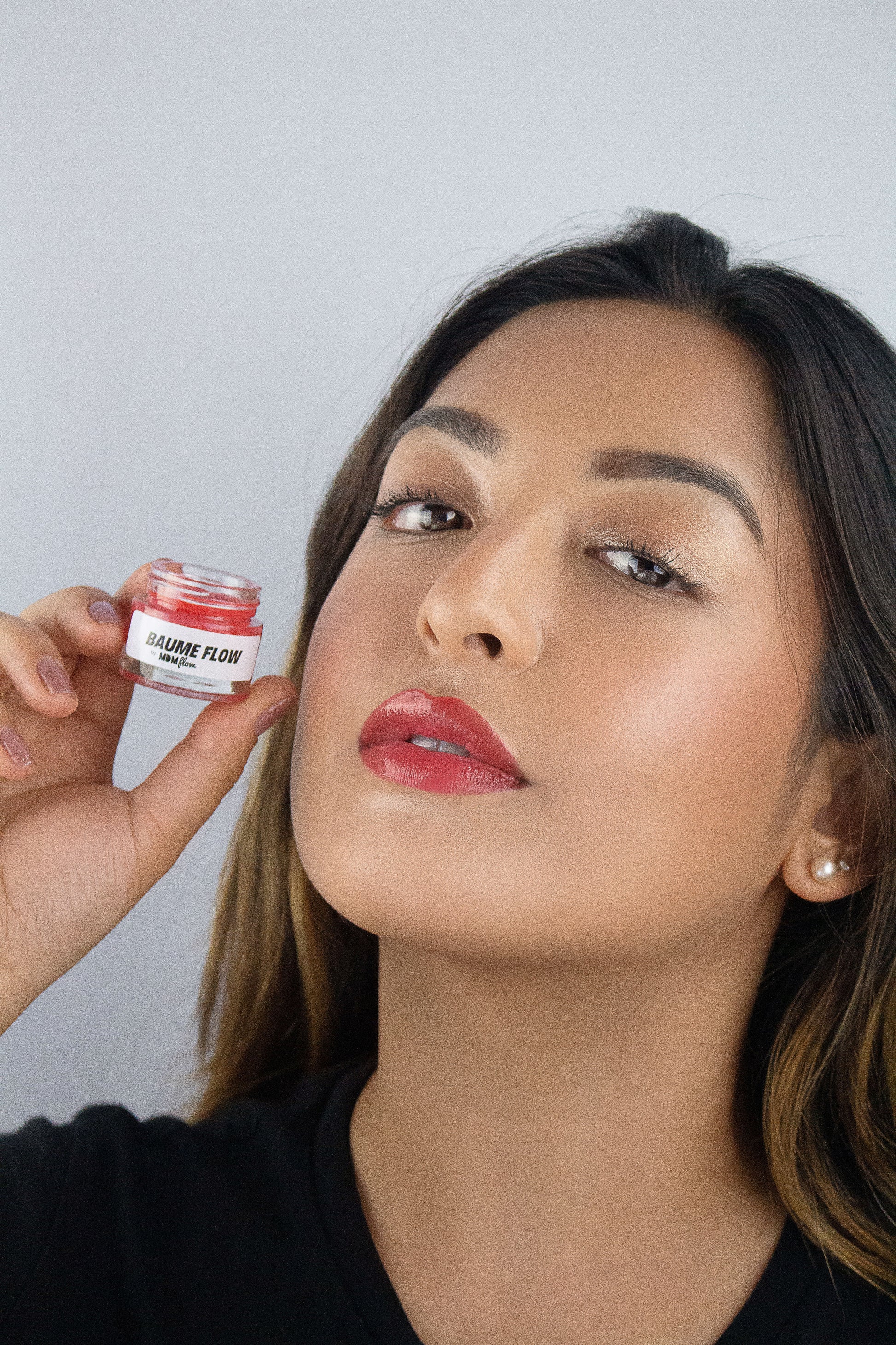 Baume Flow contains coconut oil, shea butter, pomegranate sterol & meadow foam seed oil. Non tacky, non sticky, non drying. Just a smooth creamy shine 〰️ perfect for lighting up your eyes & lips.